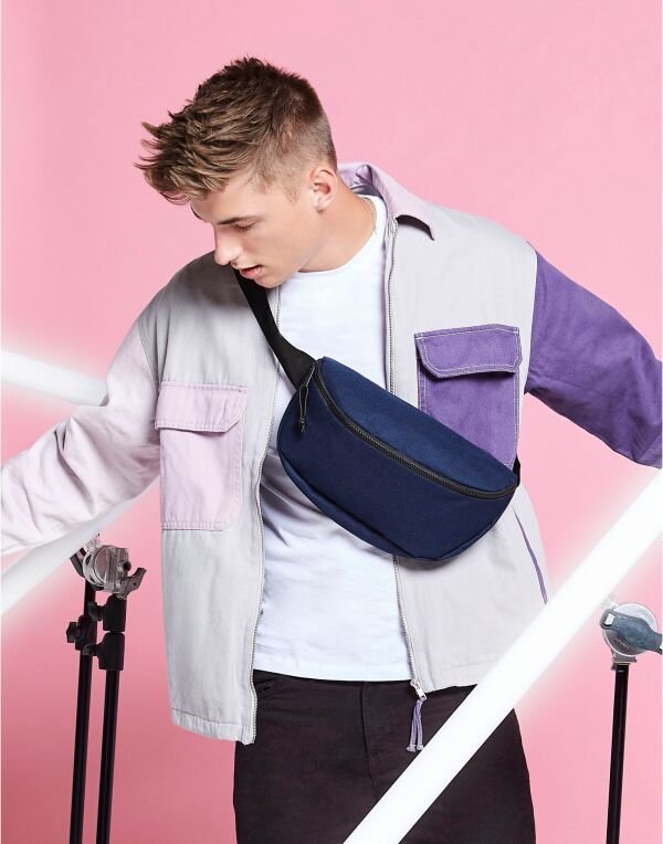 The Bagbase Oversized belt bag offers practical storage with excellent branding space.