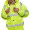 BEESWIFT HI-VIS FLEECE LINED BOMBER JACKET ORANGE 4XL • Heavyweight Polyester Oxford outer shell with PU coating.• Fleece lining, including fleece collar• Press stud flap.• Fully taped seams.• 2 Lower front pockets with flaps.• Internal breast pocket plus separate phone pocket• Concealed hood/drawcord in collar.• Conforms to EN ISO 13688:2013+A1:2021• Conforms to EN ISO 20471:2013+A1:2016 Class 3 High Visibility• Conforms to EN343:2019 Class 3 Water Penetration Class 1 Air Permeability Class X Readymade water tower test
