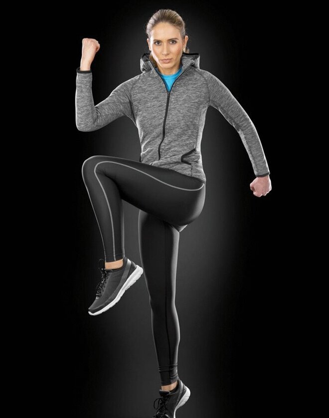 - Super-stretch fabric and ergonomic seams allow natural movement