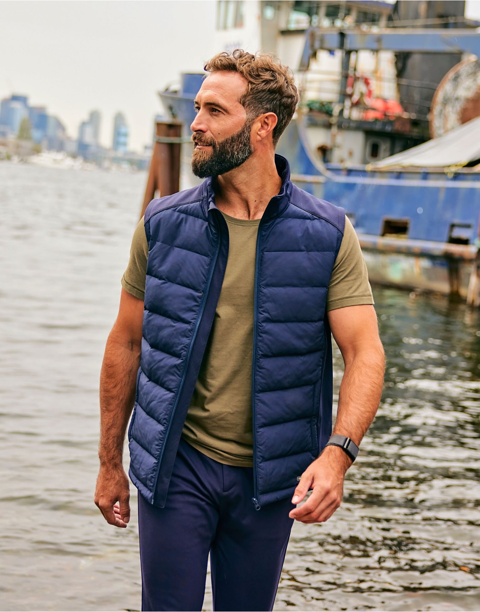 - Oak Harbor, our hybrid vest that embraces the perfect balance of warmth, style and functionality. The stretch-polyester sides let you move in total comfort. Quilted and warming front and back panel insulated with Sustans® padding in renewable fibres from DuPont™ Sorona®. Fully zipped with auto-lock zipper slider at front and pockets. Wear it as a layer above an Oakville sweater or the Traverse Half Zip.