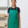 A classic full bib apron with a contrast coloured panel appearing along the length of the right hand side which can be an excellent branding solution. the colours used on this apron are part of the ‘colours collection’ from premier. featuring two slanted side pockets and useful adjustable buckle on the neckband.
