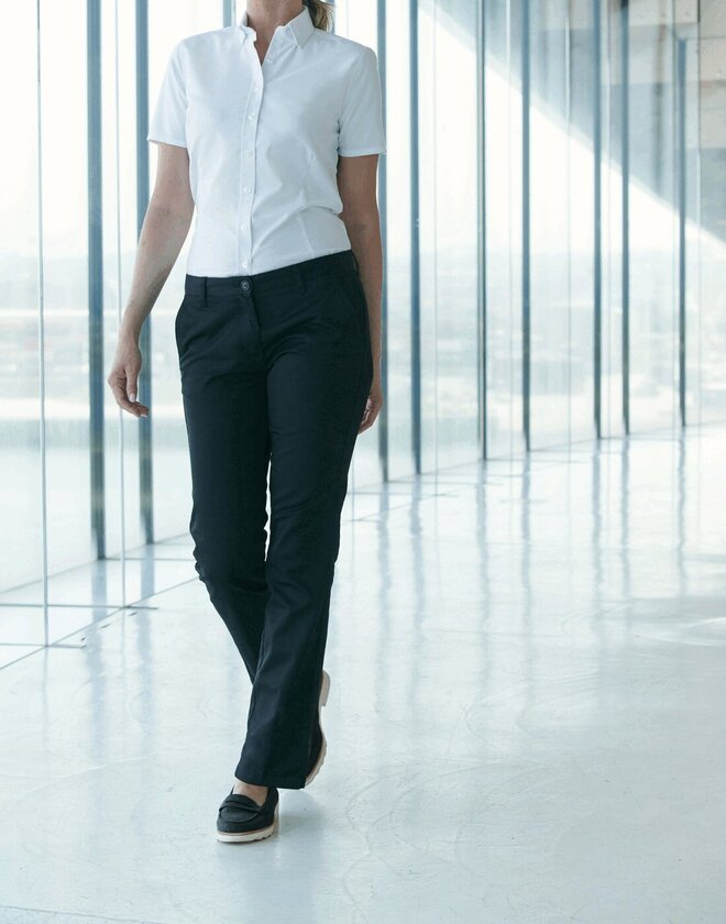 The Henbury H641 Ladies 65/35 Flat Fronted Chino Trousers is a practical work trouser designed for everyday working life.
