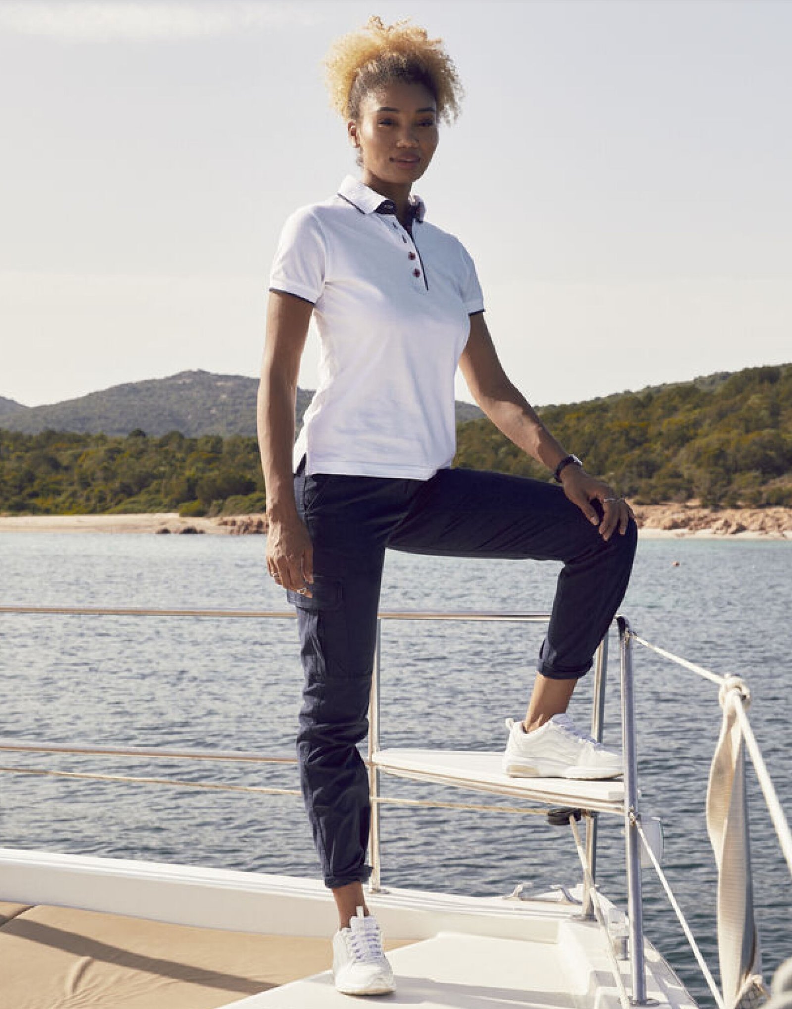 - Polo with colour contrast for buttons, necktape, placket and side vent