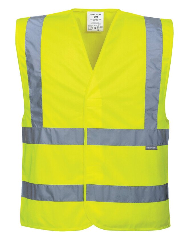 The Portwest HI-VIS TWO BAND AND BRACE VEST from Portwest is High-visibility design that meets UK site compliance requirements without sacrificing wearability.