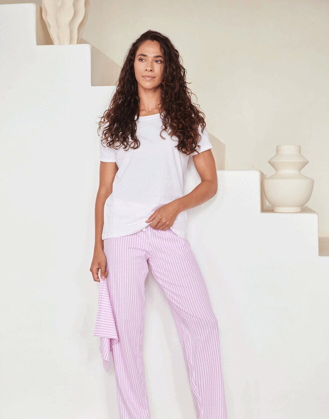 - Contrast pants with elastic waist
